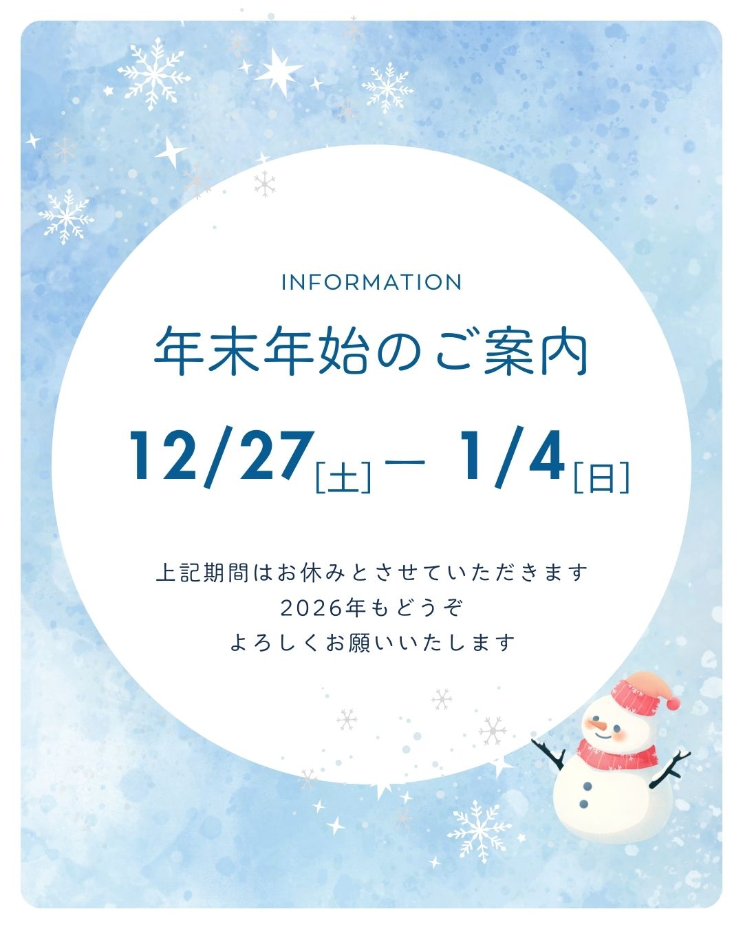 年末年始 休業のお知らせ
